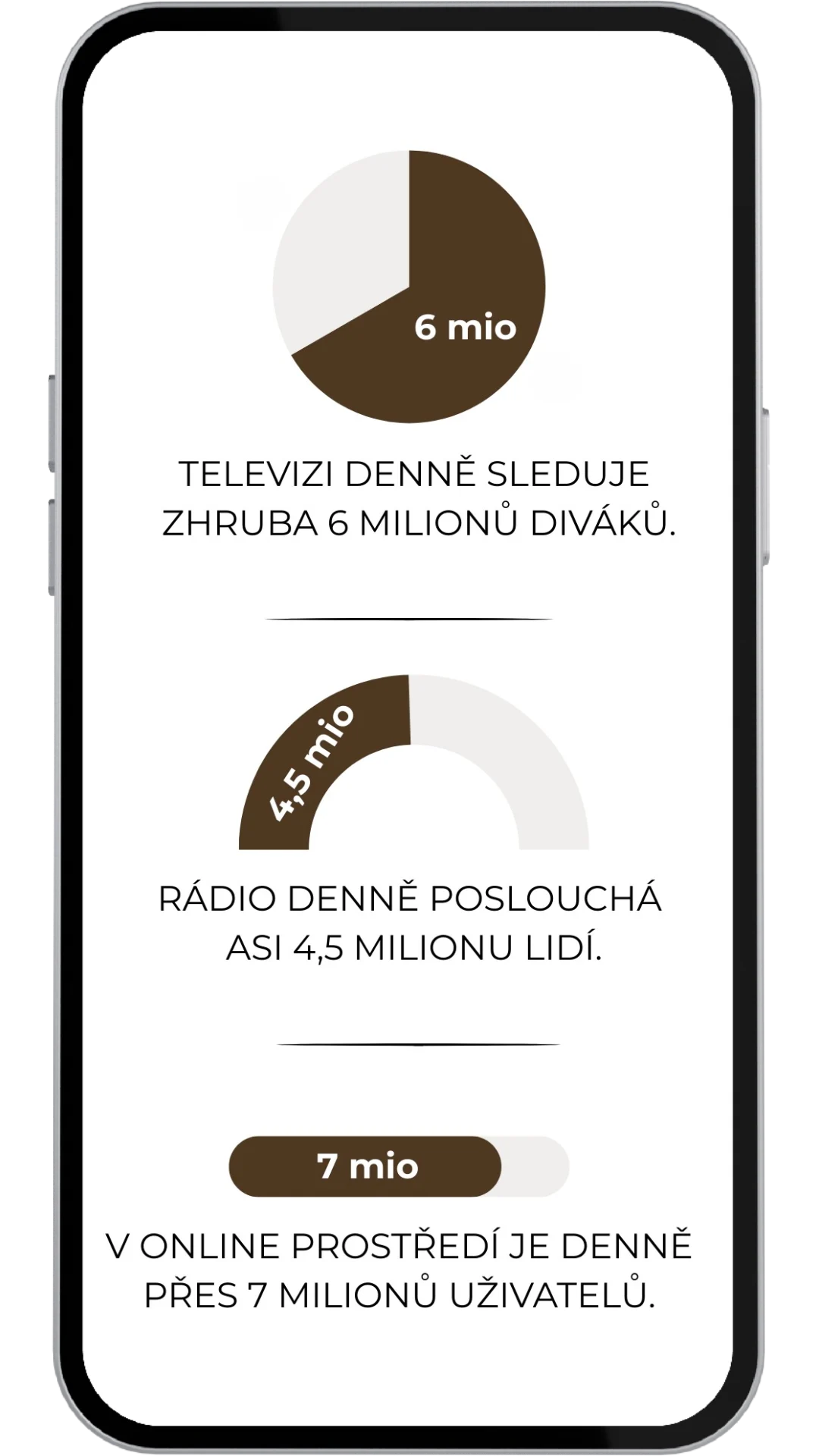 Spojujeme sílu tradičních i digitálních médií, aby byla vaše značka vidět i slyšet díky promyšlené mediální strategii ve správný čas a na správném místě.
